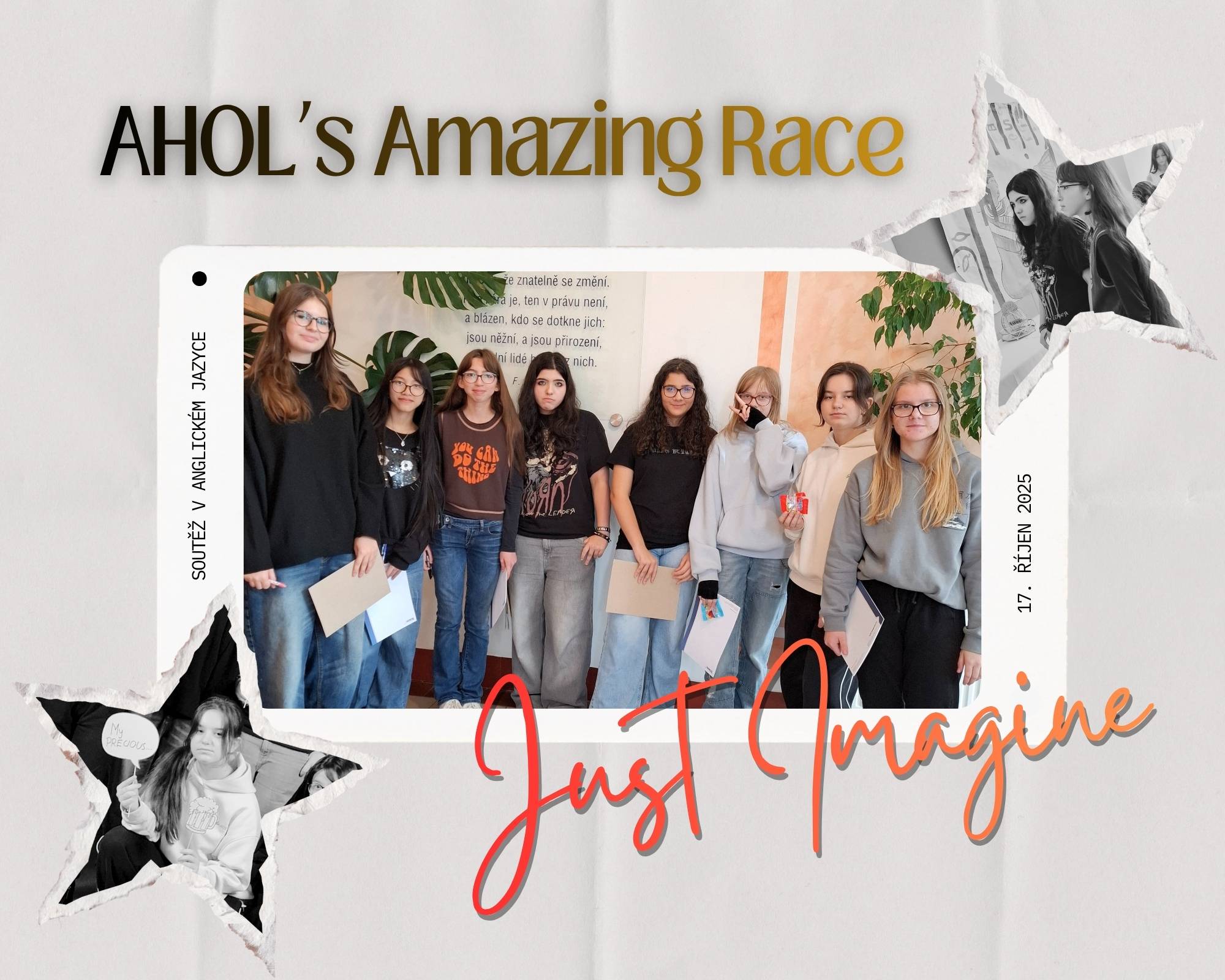 V polovině října se již tradičně koná na SŠ AHOL jazyková soutěž Ahol’s Amazing Race. Letošní, již 10. ročník, nesl podtitul Just Imagine. Ani letos naše škola nechyběla – tým žákyň z 6.–9. ročníku se vydal do světa fantazie, tvořivosti a dobrodružství.
