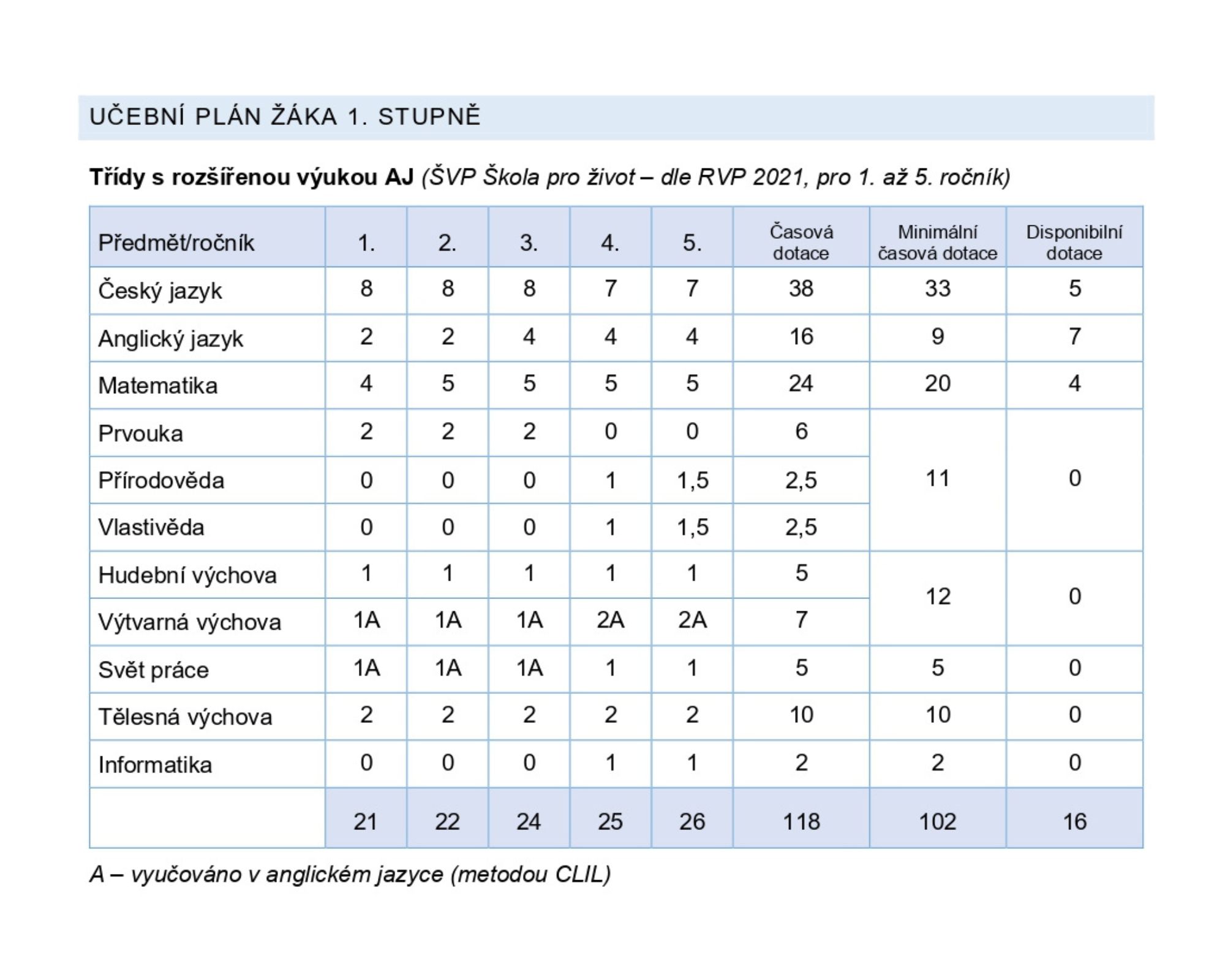 Naše škola zavedla CLIL v jazyce anglickém do různých vyučovacích předmětů od září 2020. Výuku CLIL používáme na 1. stupni v předmětech člověk a svět práce a ve výtvarné výchově, na 2. stupni v předmětu informatika a zeměpis.