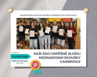 V červnu se deset našich žáků zúčastnilo mezinárodních jazykových zkoušek Cambridge PET for Schools (B1). S velkou radostí oznamujeme, že všichni naši žáci u zkoušky uspěli – a hned tři z nich dokonce dosáhli vyšší jazykové úrovně B2, což je vynikající výsledek! Tento úspěch je důkazem nejen jejich talentu a vytrvalosti, ale také pravidelné práce… číst dále…