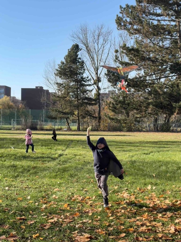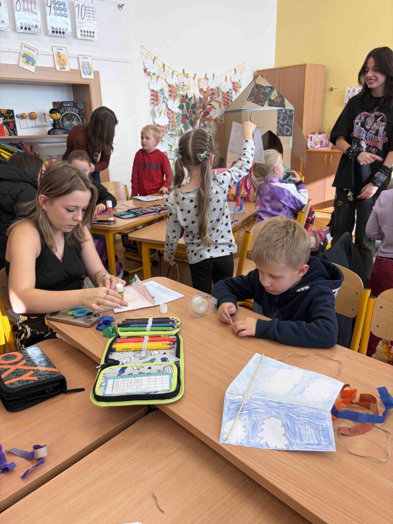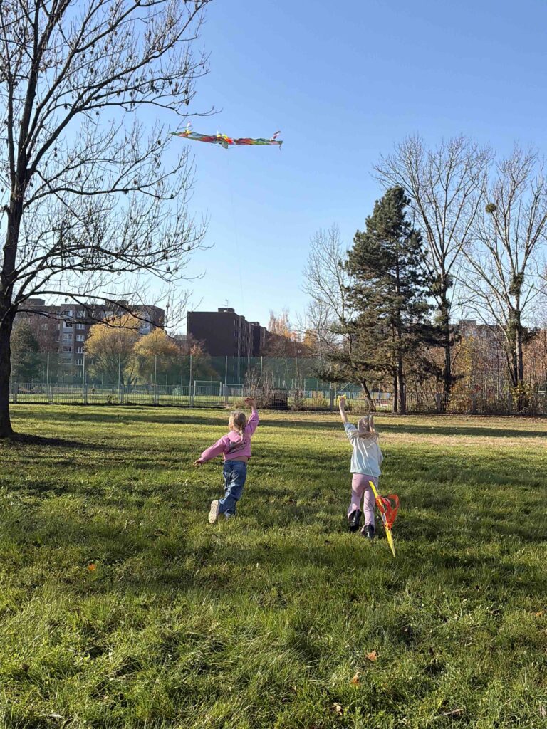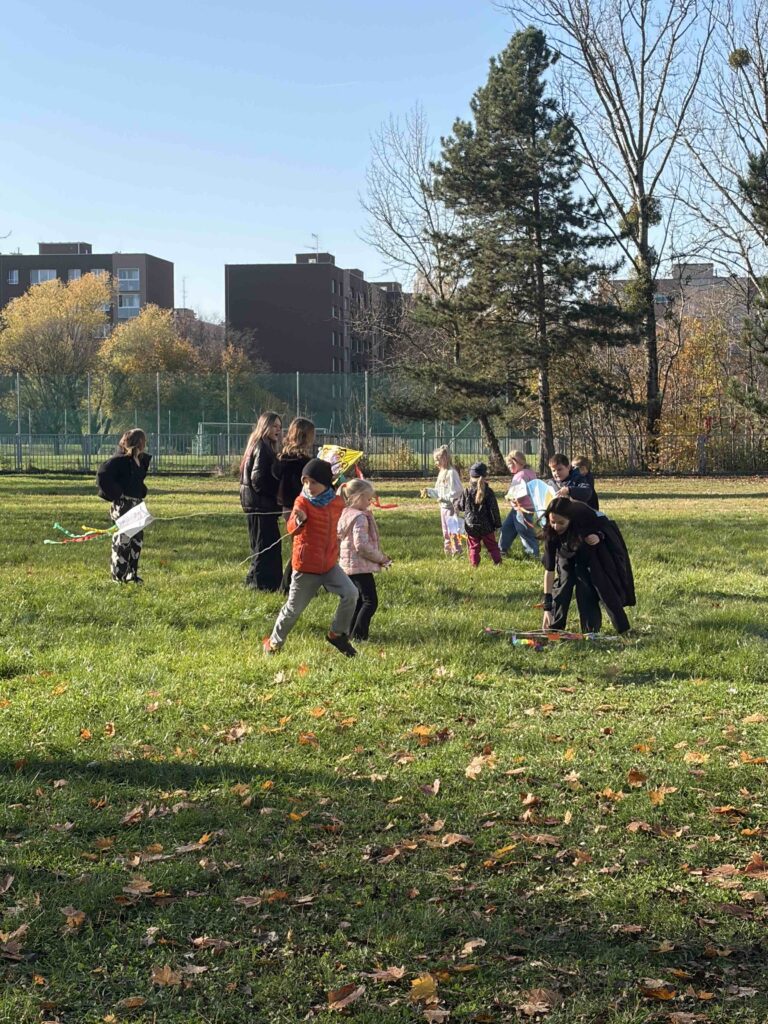 Pátek 7. listopadu byl ve znamení hrátek a přátelství! Naši prvňáčci totiž strávili dopoledne s deváťáky, kteří se na chvíli stali jejich pomocníky a průvodci při Drakiádě.🪁