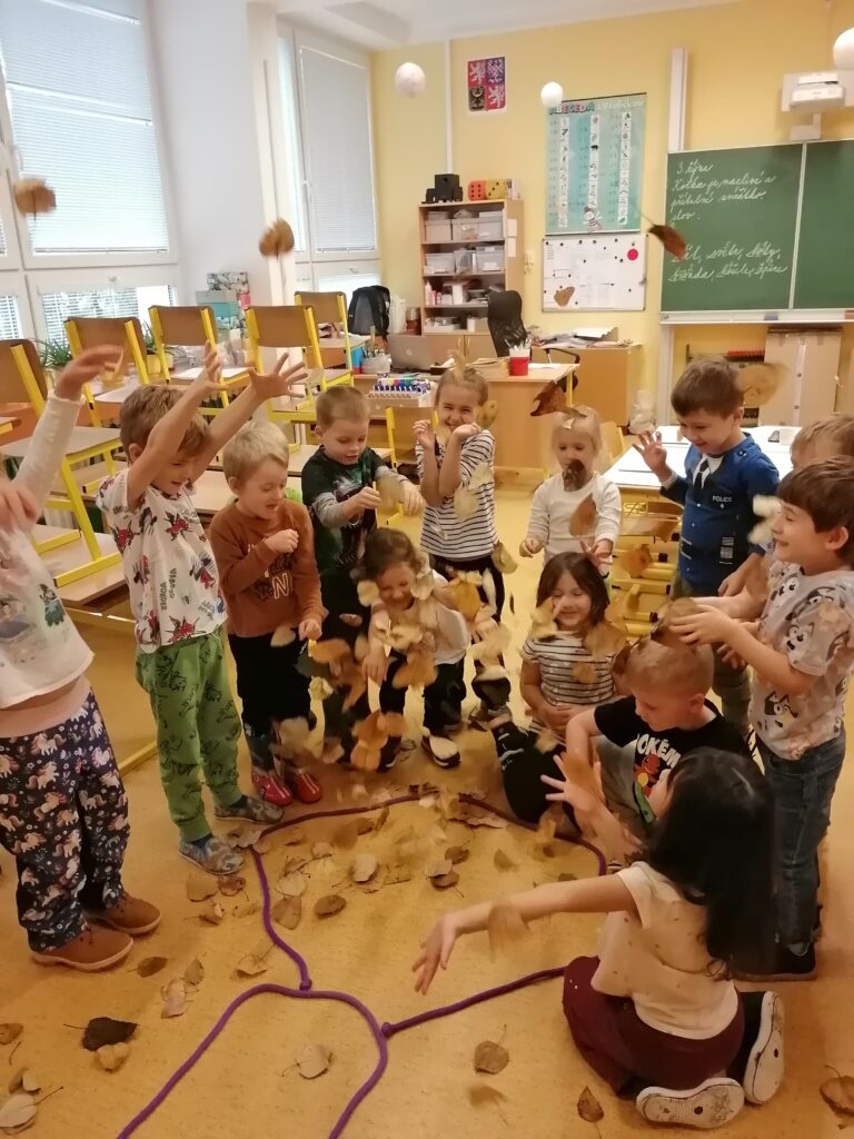 Druhá část patřila podzimu. Povídali jsme si o tom, jak se na🍂 podzim příroda mění, jaké 🌈 barvy kolem nás hrají a co všechno můžeme venku 🔎 objevovat. Poté jsme se pustili do tvoření – lepili jsme 🌳 stromy z nasbíraných 🍃 listů, hráli si s jejich tvary a odstíny a nakonec jsme 🎨 malovali vlastní podzimní strom prstovými i vodovými barvami.