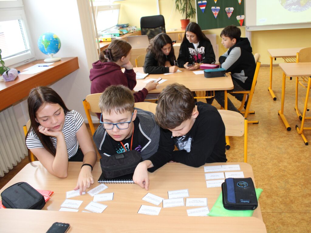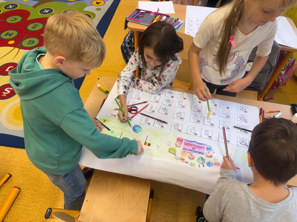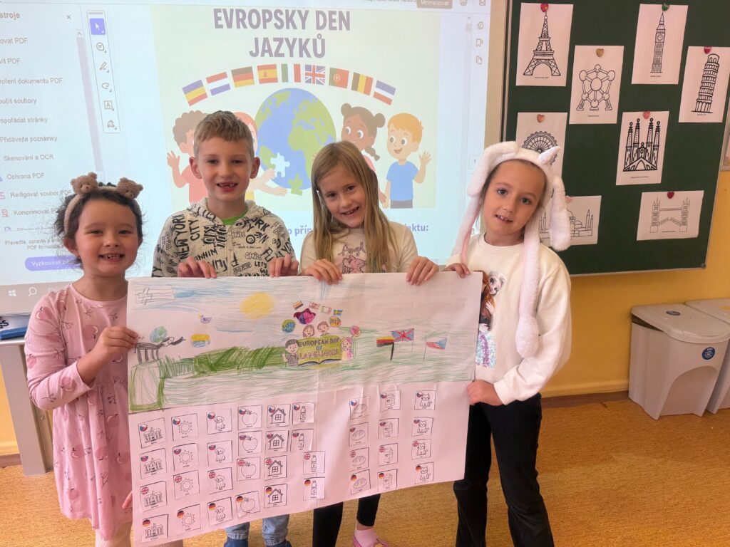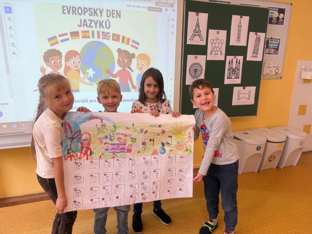 A jak se slavil u nás ve škole? Pojali jsme tento den hravou i edukační formou. Žáci procházeli různými stanovišti, v týmech plnili úkoly, poznávali nové země i jazyky. Aktivity v angličtině jsme propojili napříč předměty jako např. matematika, zeměpis, výtvarná výchova, přírodopis, hudební výchova a výchova k občanství. Žáci si otestovali svou paměť, pohotovost a zároveň se dozvěděli mnoho zajímavých informací. Ty nejlepší týmy byly oceněny certifikátem a hodnotnými cenami.