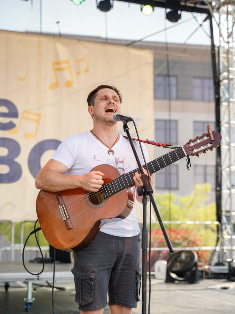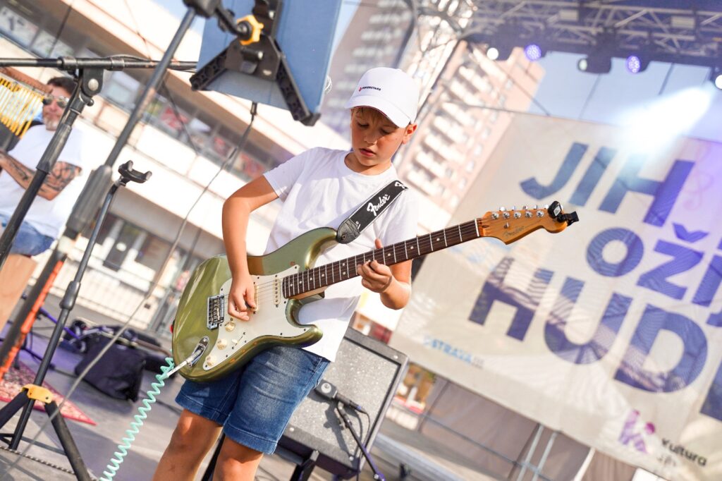 Ačkoli školní rok už za chvíli poběží naplno, ještě se na okamžik vracíme k prázdninovým zážitkům. Jedním z nich byl multižánrový festival místních umělců Jih ožije hudbou, který se konal 15. a 16. srpna na Náměstí Ostrava-Jih. Během dvou dnů se na pódiu vystřídalo 14 kapel, hudebnic a hudebníků – a mezi nimi také dva zástupci naší školy!