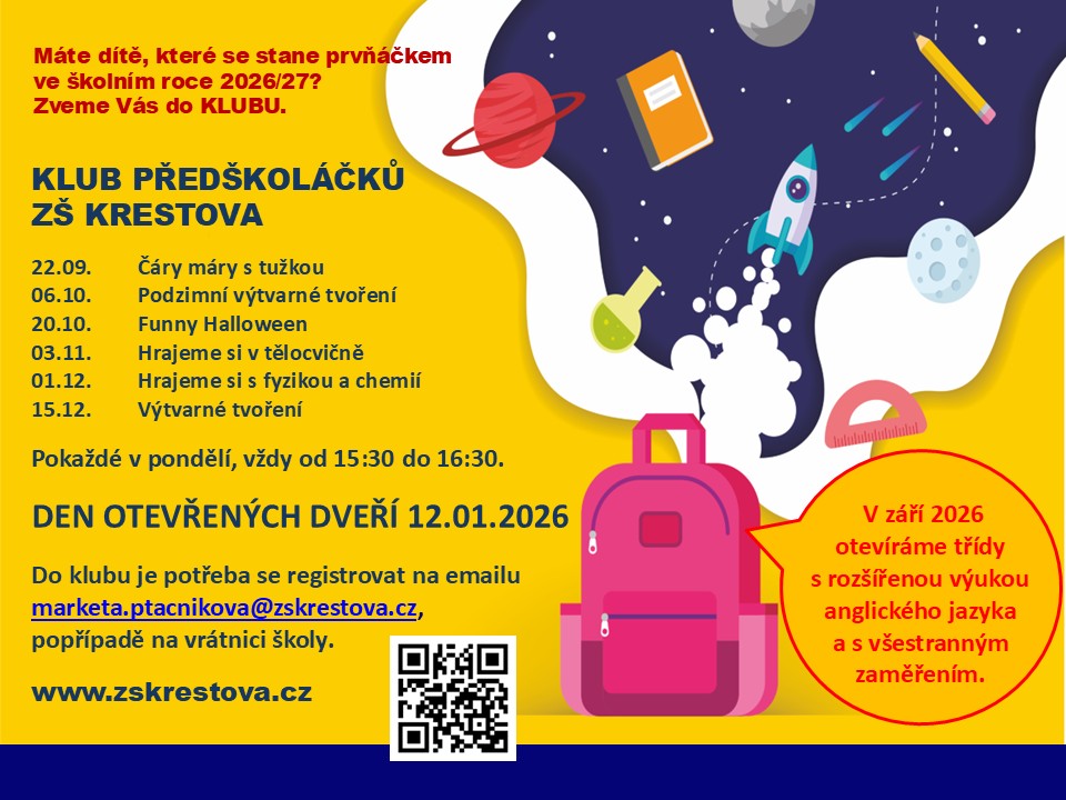 Přihlásit se můžete e-mailem na marketa.ptacnikova@zskrestova.cz, nebo osobně na vrátnici školy.