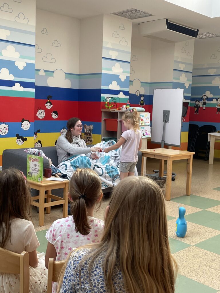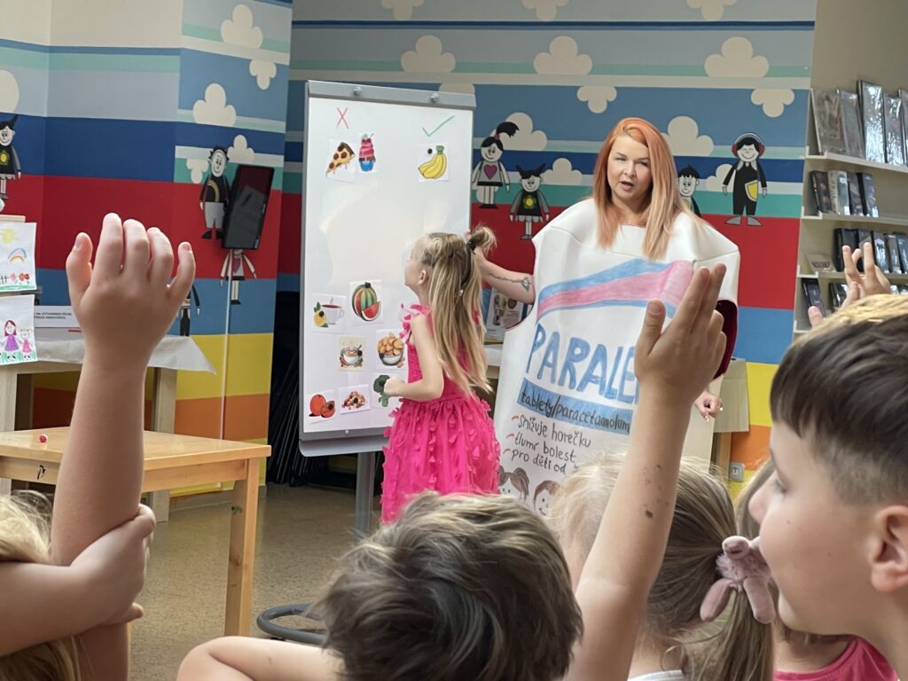 Naše třída navštívila místní knihovnu, kde se konalo slavnostní pasování na čtenáře. Pro děti byl připraven zajímavý program, který začal krátkou pohádkou o bacilech. Pohádka byla nejen zábavná, ale také poučná – děti se dozvěděly, proč je důležité pečovat o své zdraví a jak se chránit před bacily.