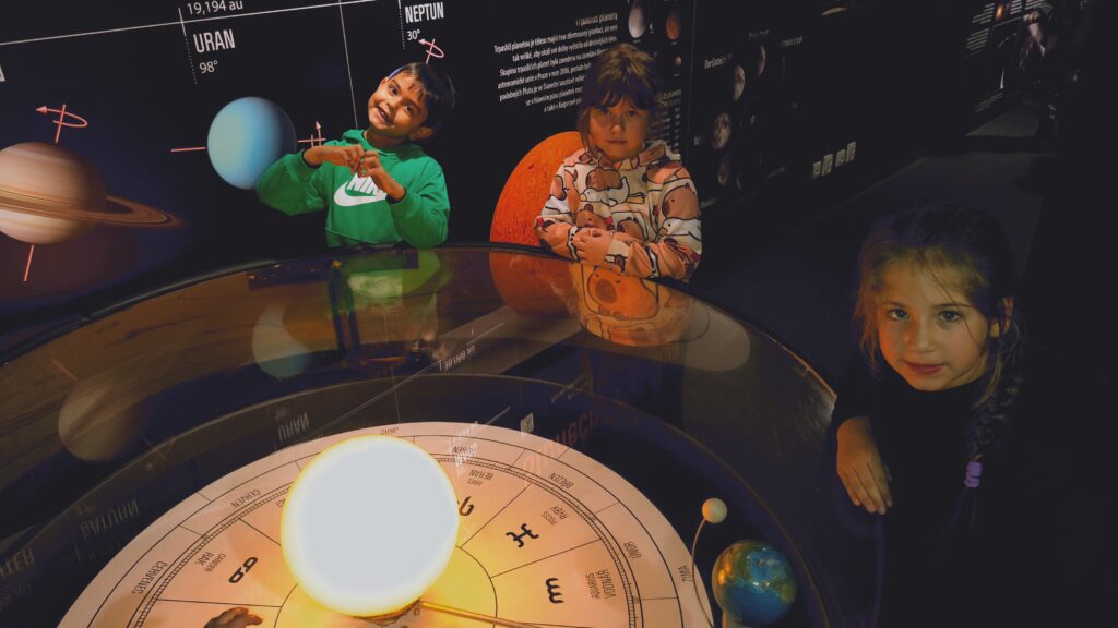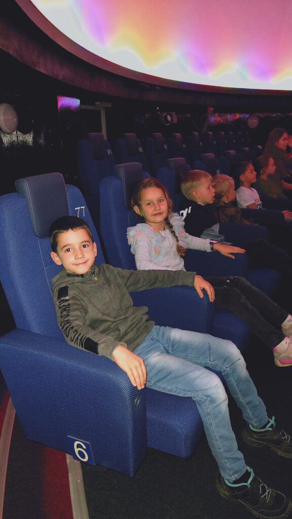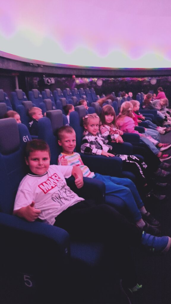 Návštěvu planetária jsme si moc užili. Společně s ledním medvědem Vladimírem a tučňákem Jamesem jsme podnikli vesmírnou cestu na palubě rakety Polaris, abychom přišli na zoubek polární záři. Dozvěděli jsme se také zajímavosti o planetách, souhvězdích nebo třeba o Měsíci.