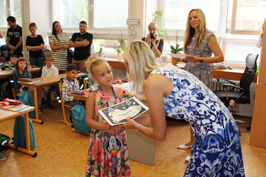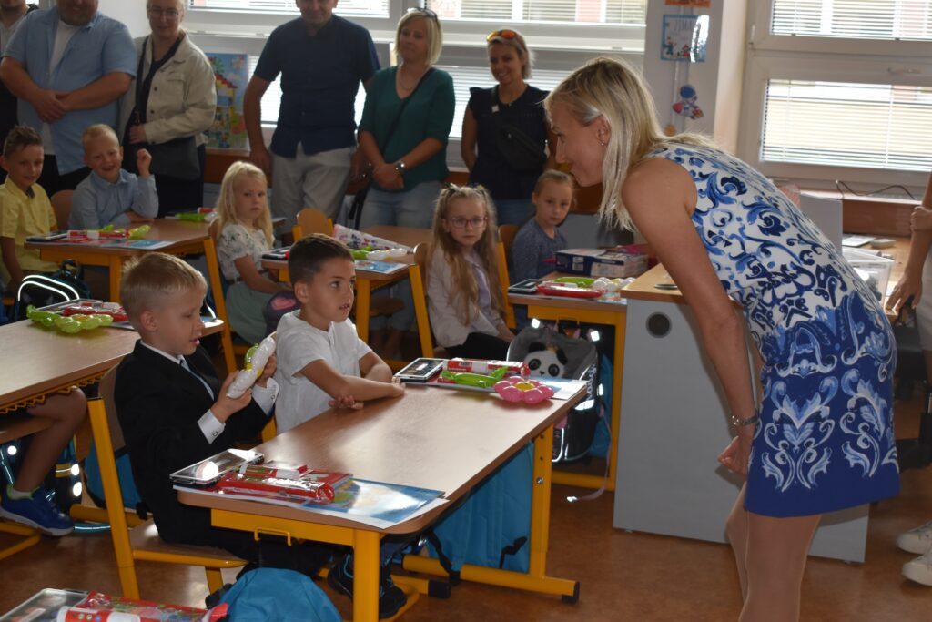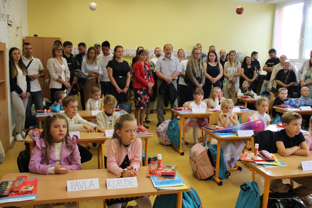 Děti přivítalo vedení školy společně s jejich třídními učitelkami, které je budou provázet celým školním rokem. Právě ony se stanou jejich oporou i průvodkyněmi na cestě plné nových zkušeností, zážitků a radosti z poznávání.