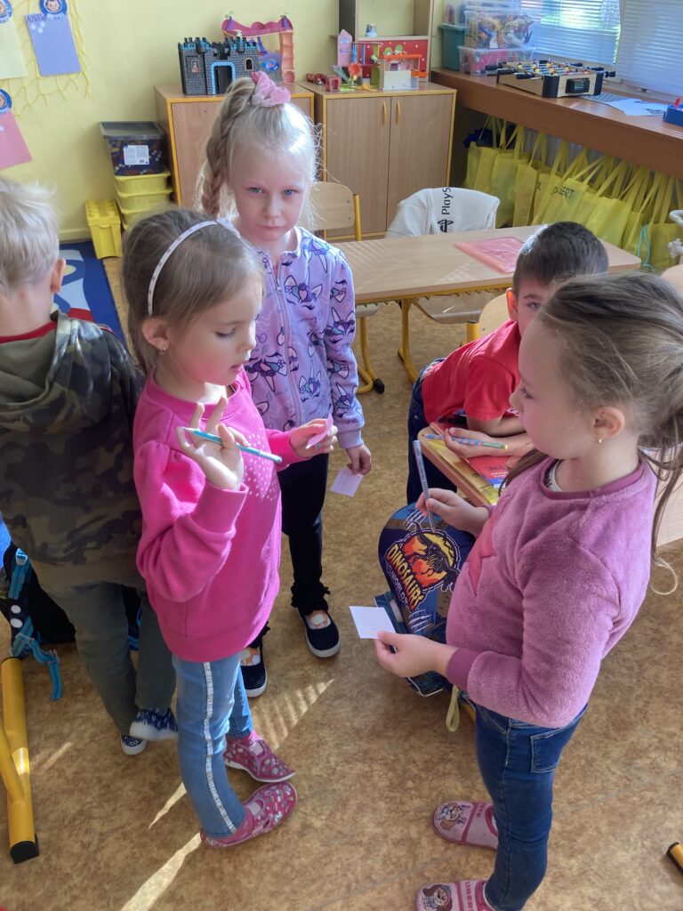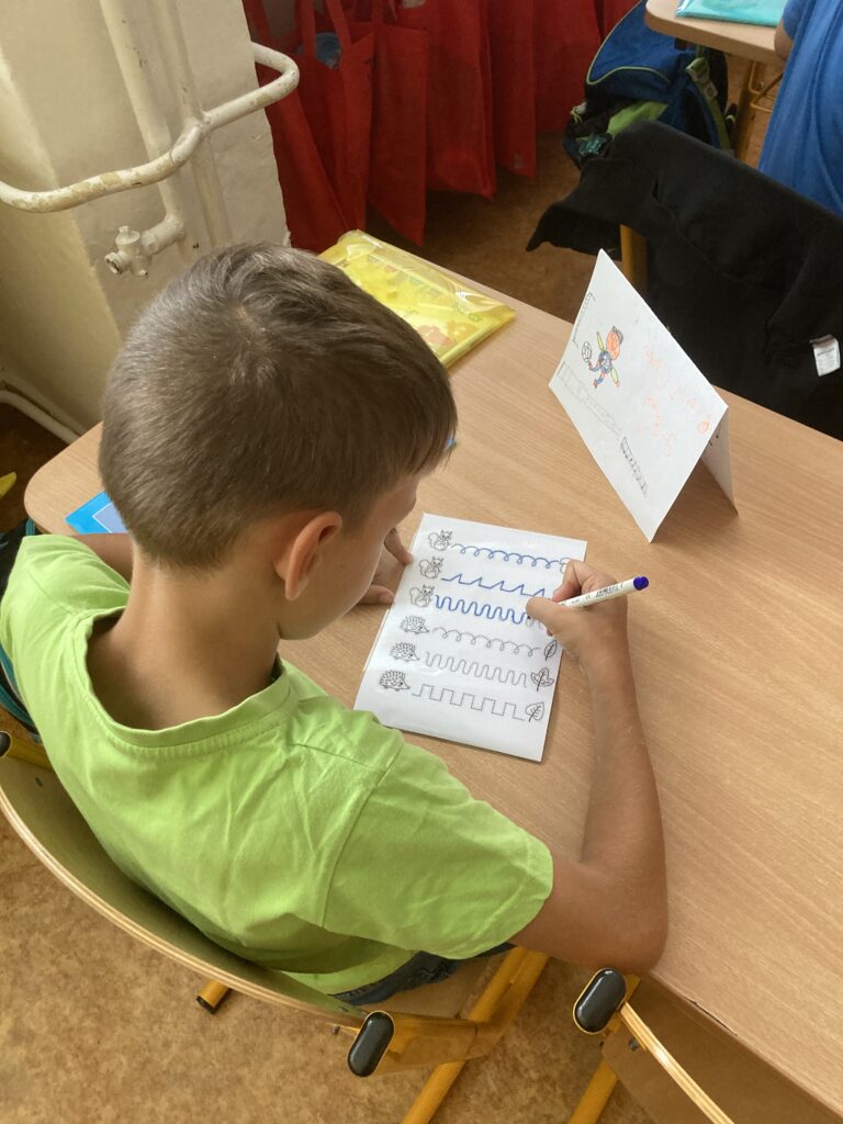 Kromě objevování světa kolem nás jsme se pustili i do uvolňovacích cviků, které nám pomáhají připravit se na samotné psaní. Nechyběla ani první hodina angličtiny – a to rovnou celá v angličtině!
