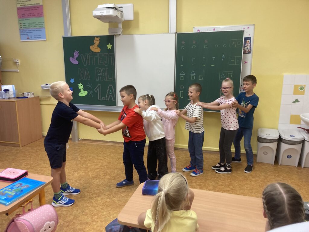 Naše učení doprovází pantomima, dramatizace i práce ve skupinách, takže se nikdo nenudí. První týden jsme završili společnou fotografií, aby nám zůstal vzpomínkový snímek na začátek této velké objevné mise.