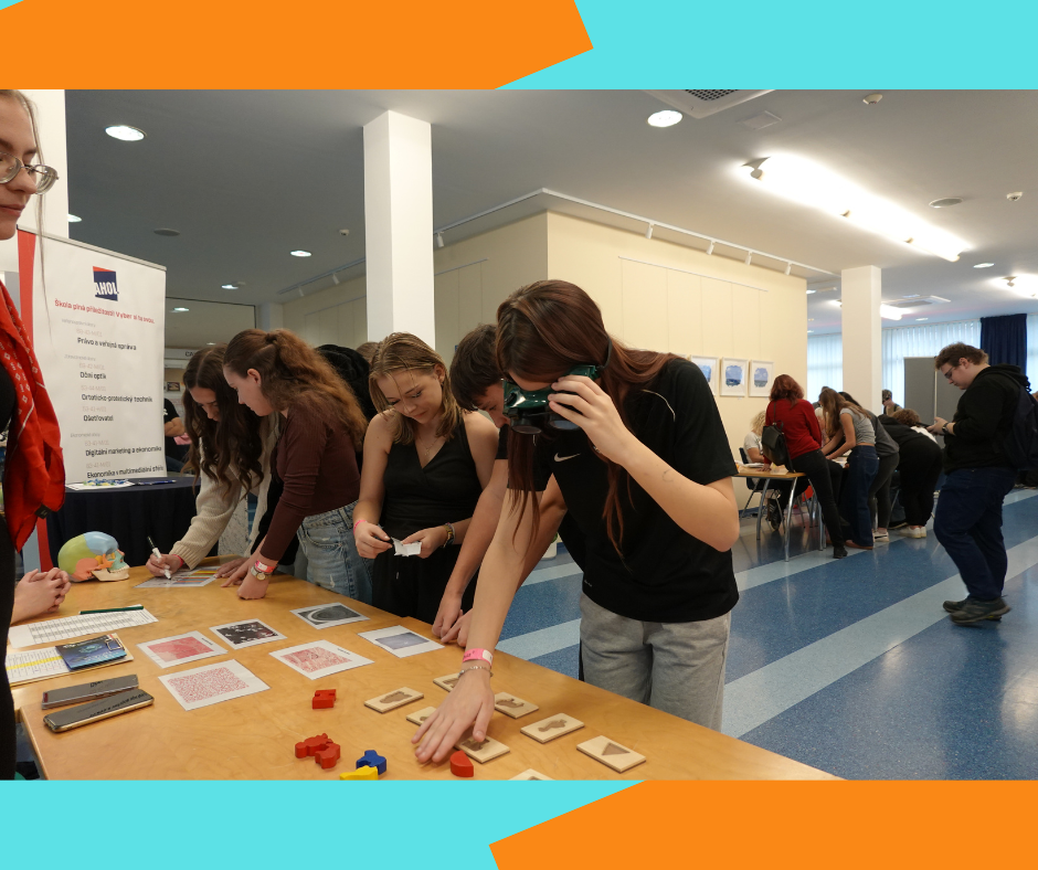 Dne 9.10. 2025 se třída 9.B zúčastnila 18. ročníku interaktivní soutěže v praktických dovednostech pro žáky základních škol. Šestičlenný tým si vyzkoušel pestrou paletu středoškolských oborů. Za absolvování stanovišť získával body a soutěžil tak s ostatními školami. V těžké konkurenci jsme se bohužel na první tři místa neprobojovali, ale i tak jsme si celé dopoledne užili a získali spoustu inspirace pro volbu střední školy.