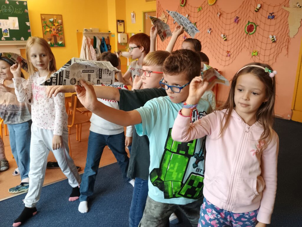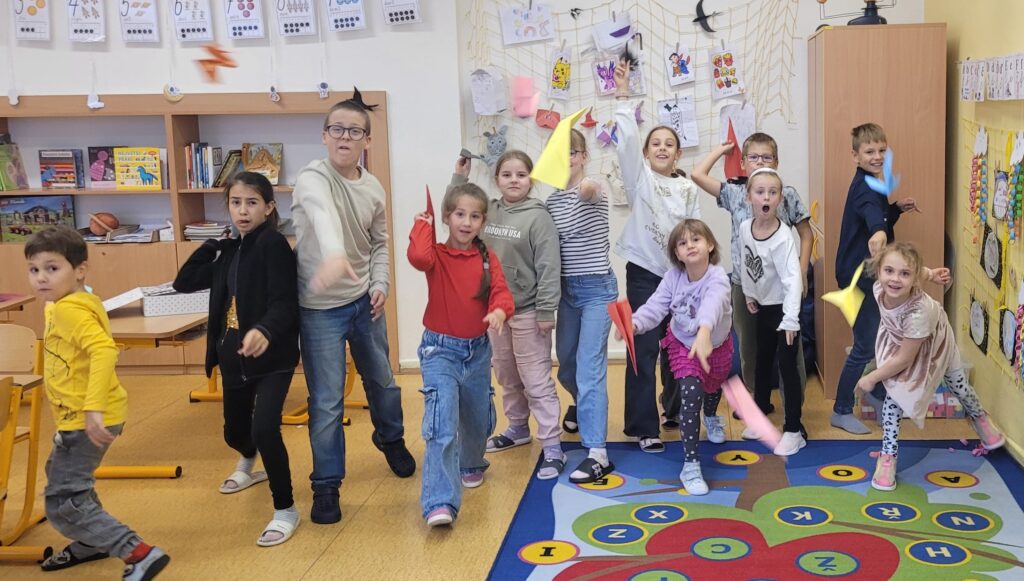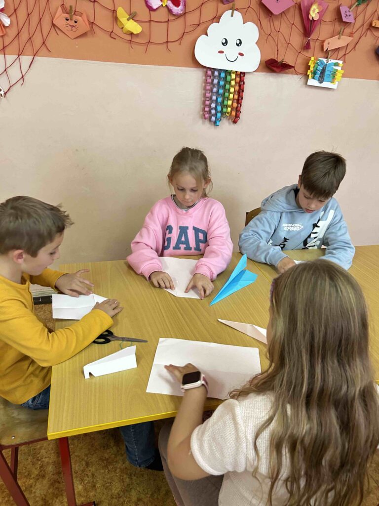 S příchodem chladnějších dnů jsme se přesunuli do vnitřních prostor, kde jsme se věnovali výtvarným činnostem, nejvíce skládání papírových vlaštovek. To se nám tak zalíbilo, že jsme si na konci měsíce uspořádali Vlaštovkiádu – soutěž o nejlepší vlaštovku. Touto aktivitou jsme zároveň odstartovali náš celoroční projekt Origami, ve kterém se postupně budeme seznamovat s různými technikami skládání papíru.