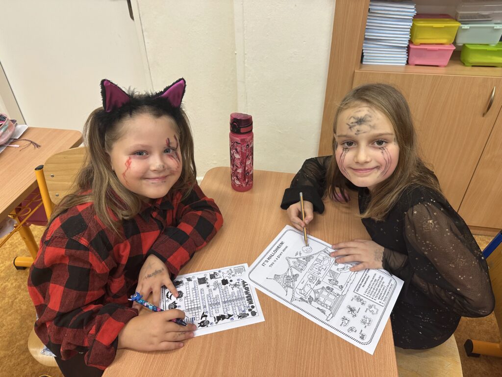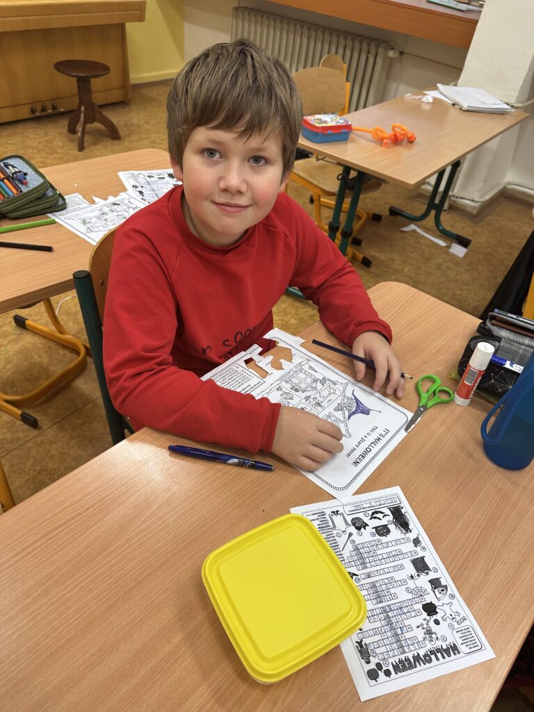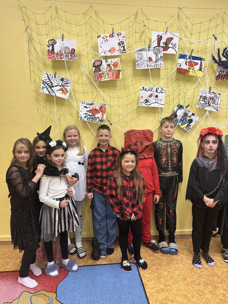 I když se Halloween slaví až 31.10., na naši školu zavítal již o týden dříve. Žáci 3.C se stejně jako celá škola ponořili do halloweenského ducha 24.10. a na školních chodbách bylo možné vidět žáky převlečené nejen za čarodějky, ale například i za upíry. V hodinách anglického jazyka se učili slovní zásobu týkající se Halloweenu, ale tento den nebyl jen o tomto svátku. V českém jazyce se děti seznámily s rozdíly mezi Halloweenem a Dušičkami a ve výtvarné výchově se pokusily o kreativní znázornění duchů. Doufáme, že si děti Halloween užily a těšíme se na další společně strávené svátky 🙂
