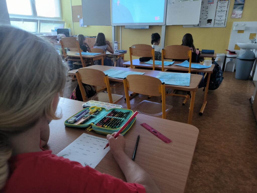 V hodině Svět práce jsme se s dětmi přenesli zpět do léta a společně si vytvořili malou vzpomínku na čas u moře. Celá hodina byla vedena metodou CLIL, takže děti nejen tvořily, ale také procvičovaly angličtinu.