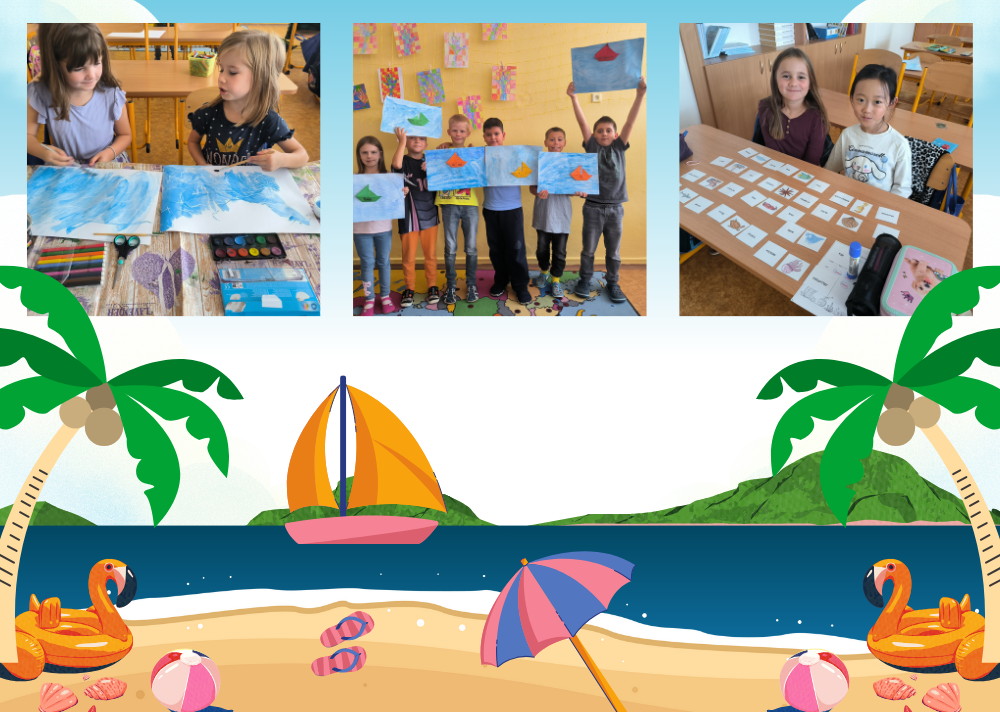 V hodině Svět práce jsme se s dětmi přenesli zpět do léta a společně si vytvořili malou vzpomínku na čas u moře. Celá hodina byla vedena metodou CLIL, takže děti nejen tvořily, ale také procvičovaly angličtinu.