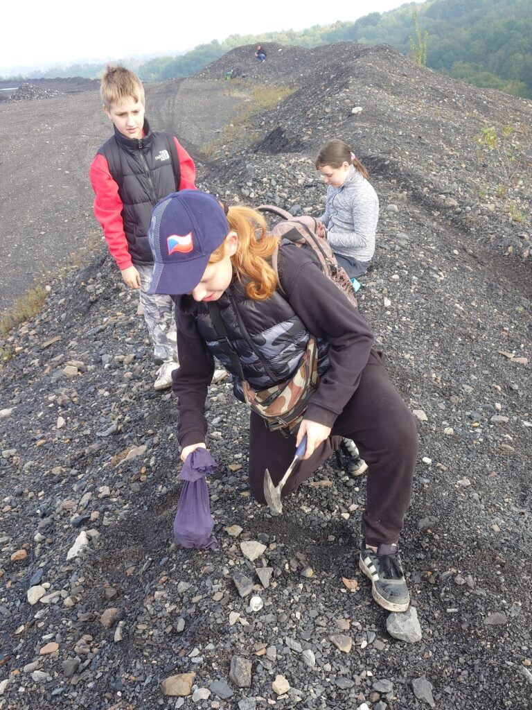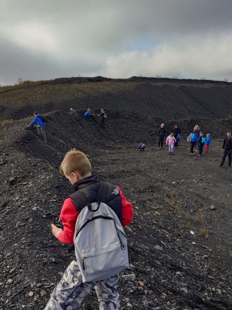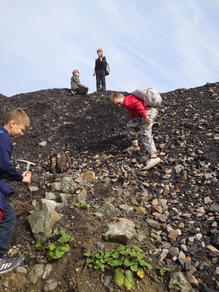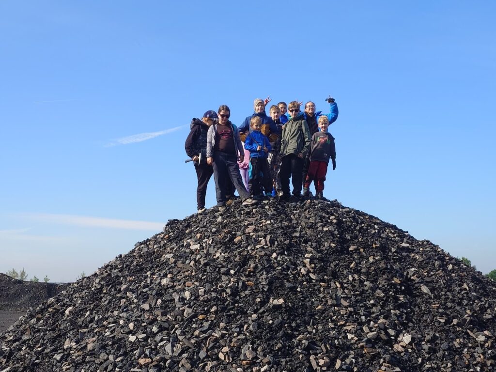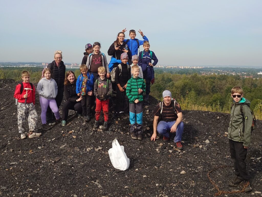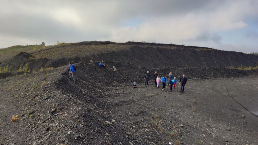 Na haldě nás přivítalo mlhavé počasí. A také kameny. V horninách moravskoslezského karbonu se dají najít různé zkameněliny (zejména plavuně, ale také přesličky a kapradiny) a minerály. Nejvýraznější z nich je ankerit: karbonát, který je díky přítomnosti železa oranžový a také velmi lesklý. Dále jsme našli také zlaté pyrity a různé odrůdy křemene – od běžného mléčného křemene přes křišťál až po vzácnou záhnědu.