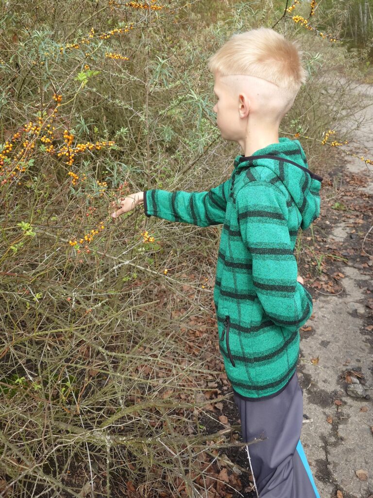 Kromě kamenů jsme si povídali také o živé přírodě, pozorovali jsme kroužící káňata, pak také nějakého jiného dravce, snad luňáka? Obdivovali jsme rozkvetlé topinambury a ochutnali kyselý (ale zdravý) rakytník.