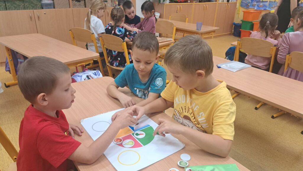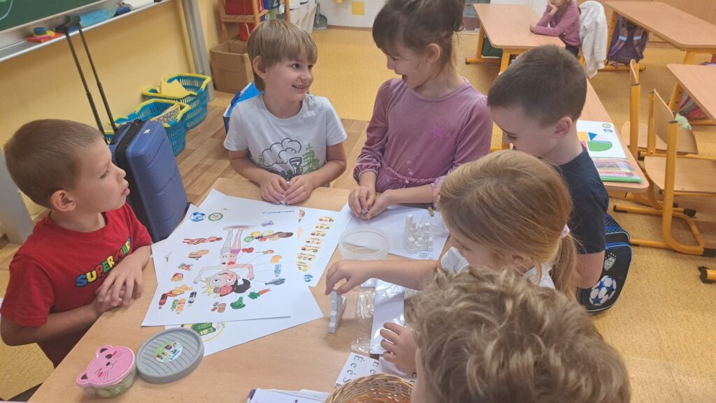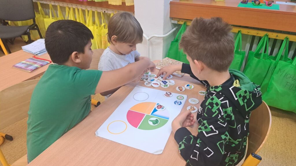 Učili jsme se, jak správně vypadá zdravý talíř. Z čeho se skládá vyvážený jídelníček – že potřebujeme sacharidy, bílkoviny, tuky, vitamíny a minerály. Proč je důležité hodně pít. Kolik kostek cukrů mají naše oblíbené nápoje (Coca – cola,…) nebo sladkostí (nutela, bonbony,…). Jak si vybrat zdravé potraviny v obchodě a také jsme si připravili zdravou svačinku a oběd.