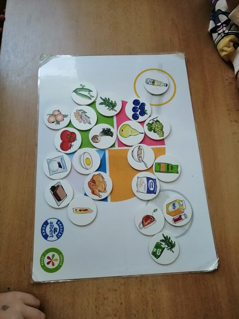 Opět po roce jsme se setkali s paní lektorkou ze Zdravé pětky, která si pro nás připravila zajímavý program plný nových informací a zábavných úkolů, které dětem pomohly si nové poznatky lépe zapamatovat. Hovořilo se o jídle, které nám prospívá, které nám škodí, jaké potraviny prospívají našim svalům, kostem, krvi, mozku. Děti si zkoušely sestavit zdravý jídelníček, poznávaly ovoce a zeleninu po hmatu, pracovaly s výukovými kartami. Dověděli jsme se také, kolik cukru obsahuje oblíbený nápoj coca-cola, jaké množství soli je vhodné během dne sníst v potravinách, i jak je to s energi nápoji.